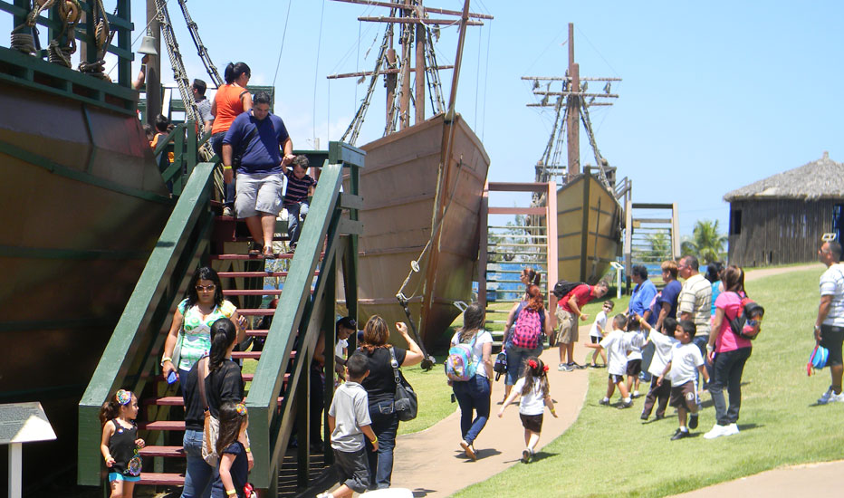 Welcome to the Spanish Conquest representation. Here you will find the Niña, the Pinta and the Santa María built at one-third of its original size. All ships are ready to be boarded. Here you will appreciate its design, different types of food used on those trips across the ocean and learn a little bit more about Christopher Columbus's life.